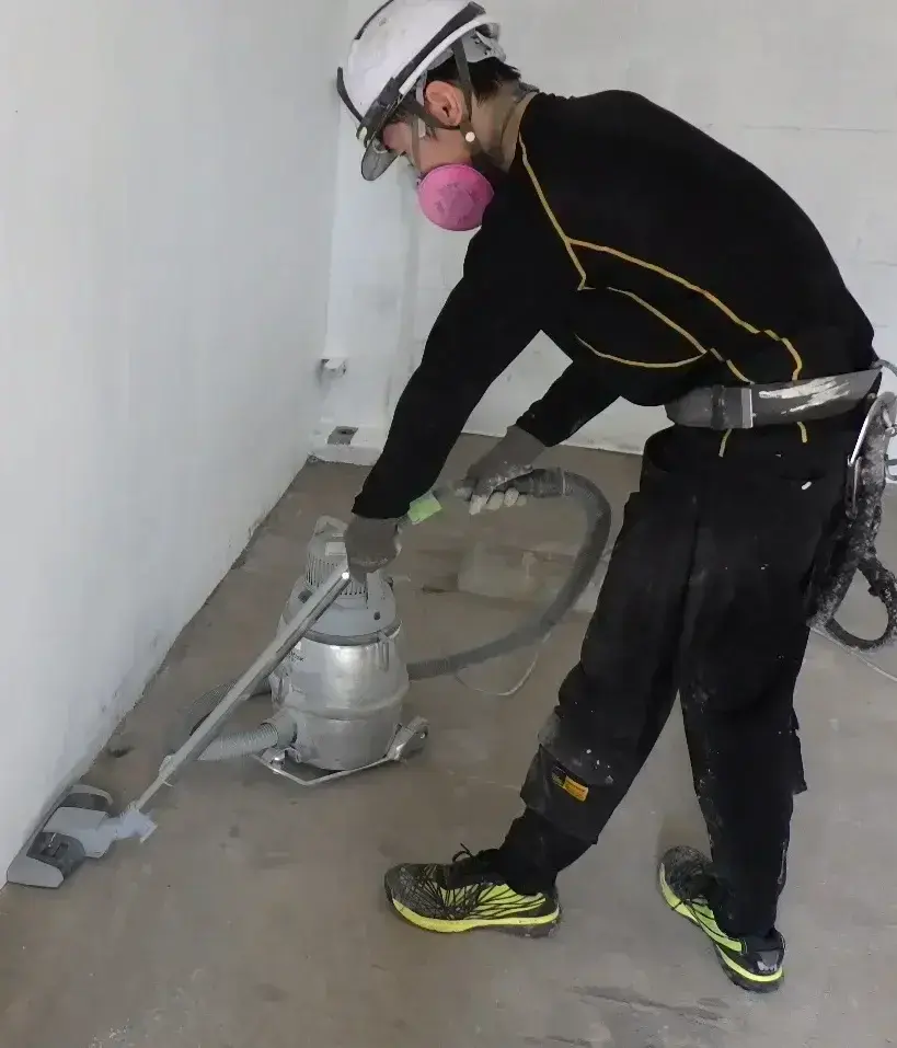 状況に応じて事前のクリーニングを実施し、粉塵飛散防止剤で除去面を前処理します。