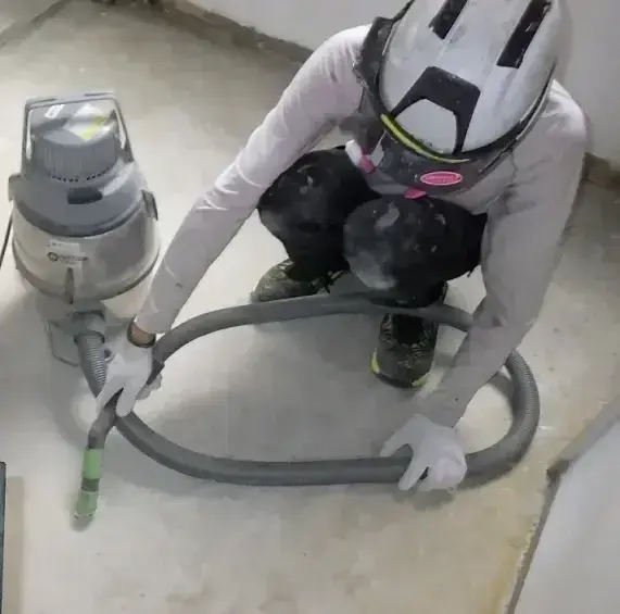 安全エリアを設定し、負圧除塵装置を設置します。換気を行い、負圧状態を維持しつつ、アスベスト濃度を継続的にモニタリングします。